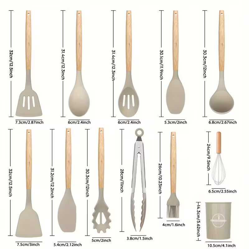 Verschönern Sie Ihre Küche mit dem 12-teiligen Premium-Küchenutensilienset aus Silikon